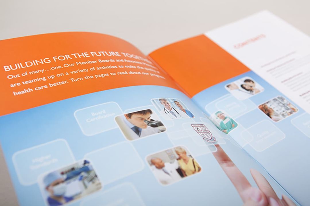 “Building for the Future” takes on a dynamic magazine-style format designed to engage the reader with compelling content, applying the concept of easy online navigation to a traditional print medium. Personal stories bring the passion and commitment of board certification to life.