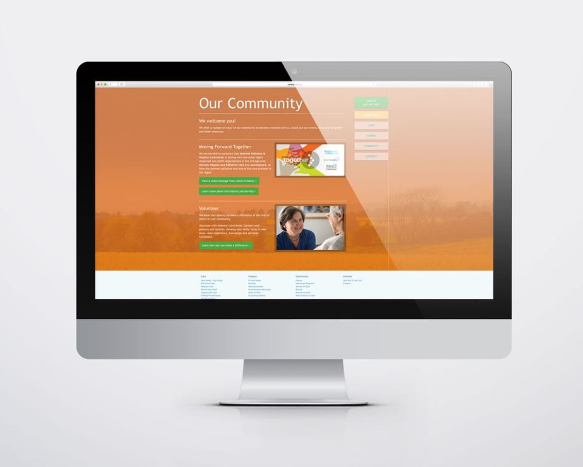We redesigned Midwest CareCenter's website to create a sense of spacious comfort and enveloped care. The launch coincided with the opening of the new Marshak Family Hospice Pavilion and the adjoining Waud Family Healing Garden.