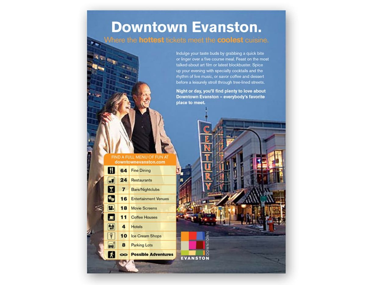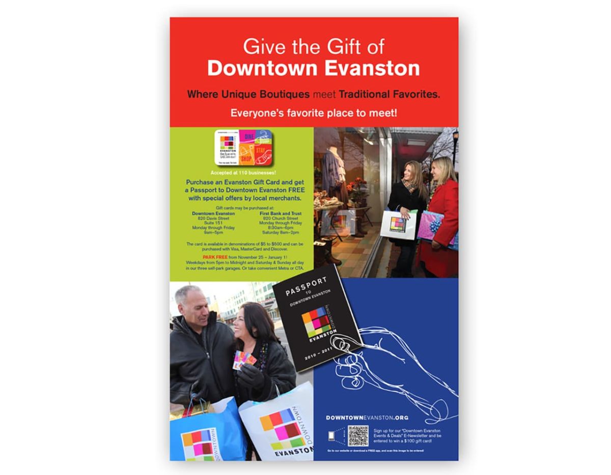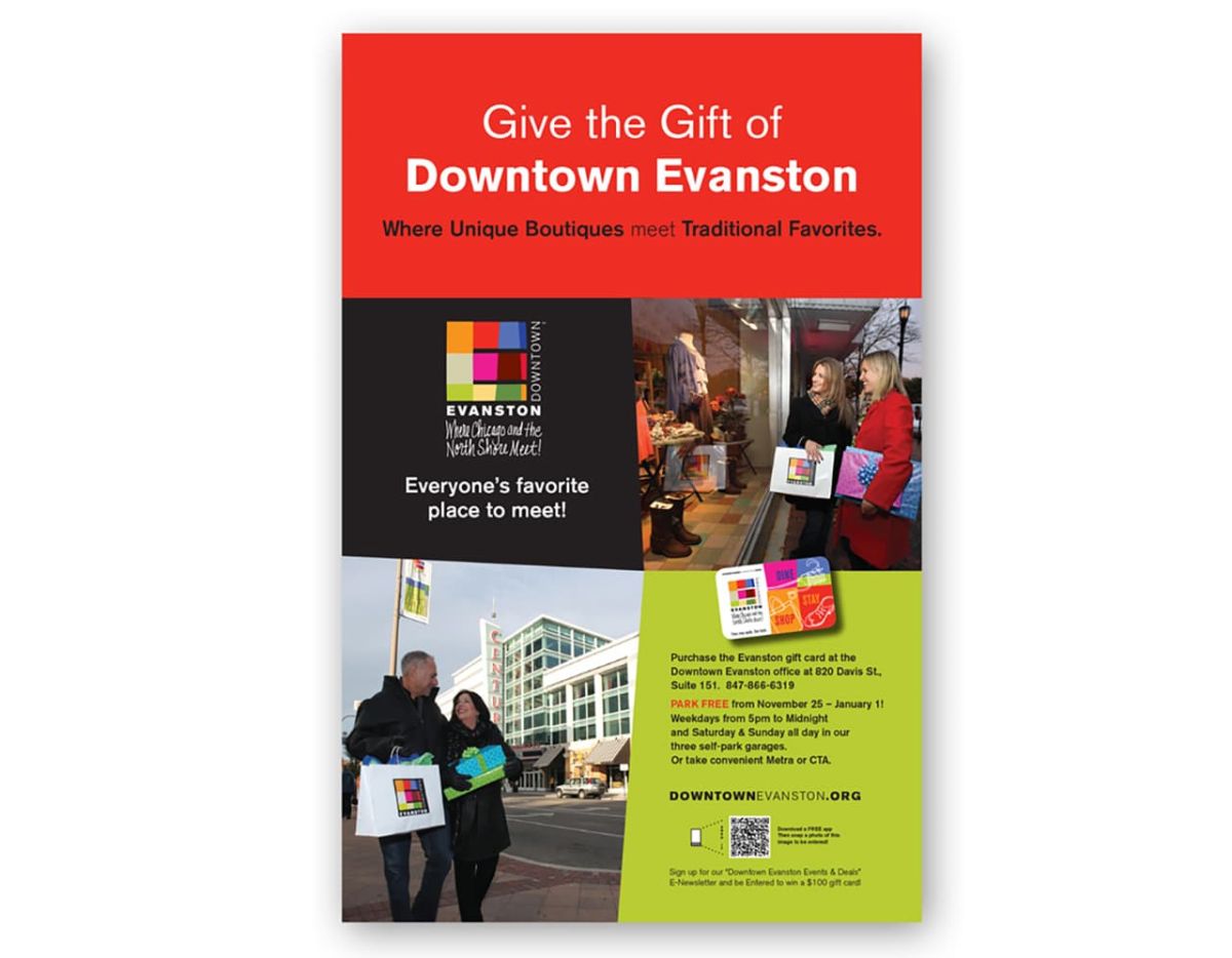 NeigerDesign worked with Downtown Evanston to create seasonal ads to develop holiday shopping excitement in downtown Evanston. The goal of the ad campaign was to position Downtown Evanston as the best place to meet for holiday shopping and entertainment and to promote their new gift card program. The campaign included print, posters for shop windows, online and outdoor advertising.