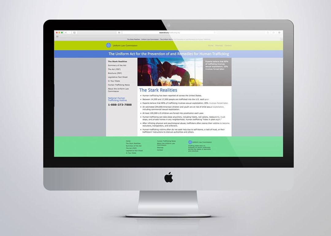 We created the LetsEndHumanTrafficking.org microsite with in-depth information about the issue and its relevancy to every state. A companion print piece was sized to be useful to commissioners in brief corridor encounters that fits easily into a legislator’s pocket.